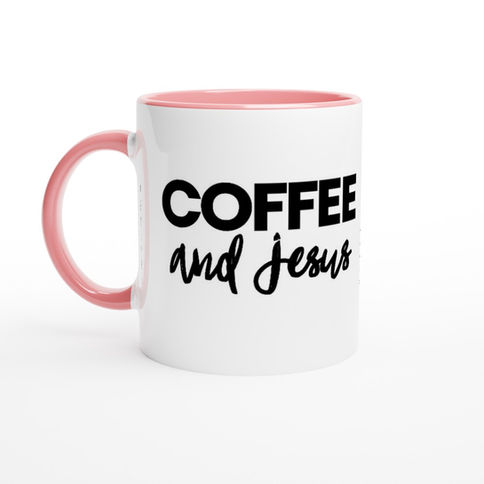 Do you love to start your day with a cup of coffee, the Bible and maybe also a notebook? This cup is made especially for that special quality time with the Lord. - Ceramic 11oz mug- Dishwasher and microwave safe- Colored rim, inside, and handle- White print area