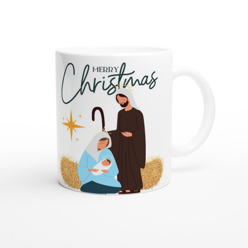 The birth of Jesus Christ - Merry ChristmasThis beautiful ceramic mug is perfect for any event of the day. Your morning coffee, a hot chocolate, or any other hot beverage you enjoy. The mug is glossy white with a colored rim, inside, and handle. The prints come out beautifully and vividly on it. The print retains its quality and luster when used in both microwaves and the dishwasher.