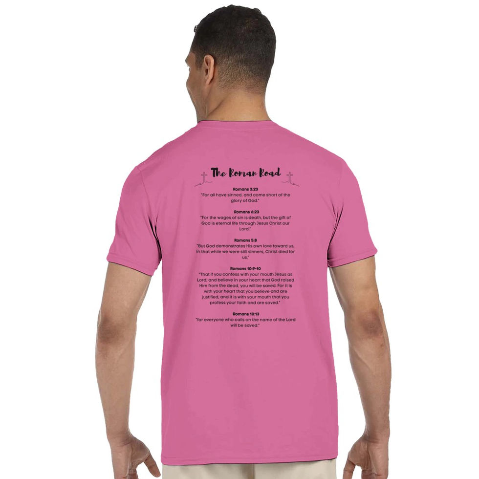 The Roman Road to Salvation is an evangelism T-shirt that tells the whole Gospel by 5 Bible verses from Paul' letter to the Romans: Rom.3:23, Rom.6:23, Rom.5:8, Rom.10:9-10 and 10:13